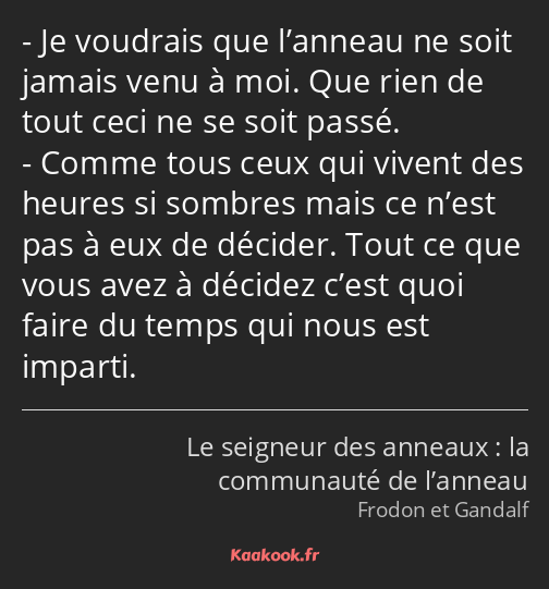 Gandalf Tout Ce Que Nous Avons A Decider C Est Ce Que Nous Devons Faire Du Temps Qui Nous Est Imp Seigneur Des Anneaux Gandalf Citation Seigneur Des Anneaux