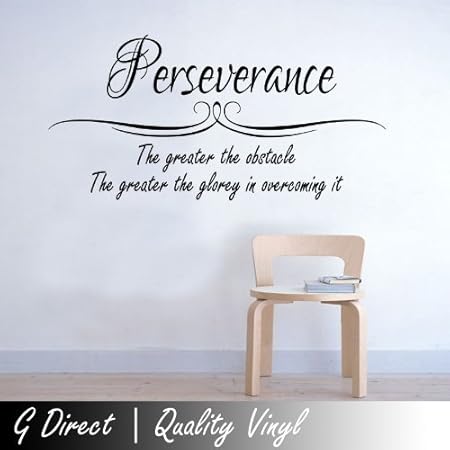 G Direct Autocollant Mural Citation Pleine D Inspiration En Anglais Perseverance The Greater The Obstacle Vinyle Mat Noir 100cm X 55cm Amazon Fr Bricolage