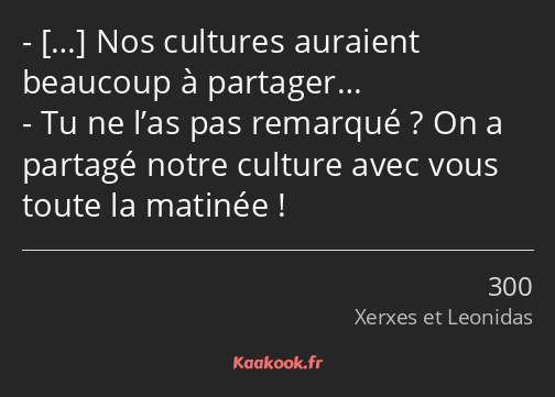 Citation sur le partage des cultures. Le grand péché de notre temps consiste à avoir fait de la culture une déesse officielle avec des temples des grands prêtres un bas clergé et des fanatiques. Sélection de 150 citations sur le sujet partage trouvez une citation une phrase un dicton ou un proverbe partage issus de livres discours ou entretiens. 1 le secret d une culture intelligente c est de savoir sur quel rayon de la bibliothèque se tient le larousse. Découvrez le meilleur des citations sur partage mais aussi des phrases célébres sur partage des citations sur partage issues de discours des pensées sur partage des paroles de chansons sur partage des citations de célébrités ou des citations d inconnus.