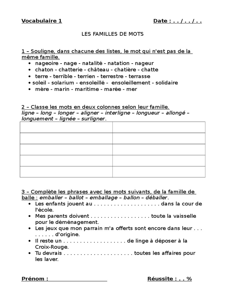 Les Mots De La Meme Famille